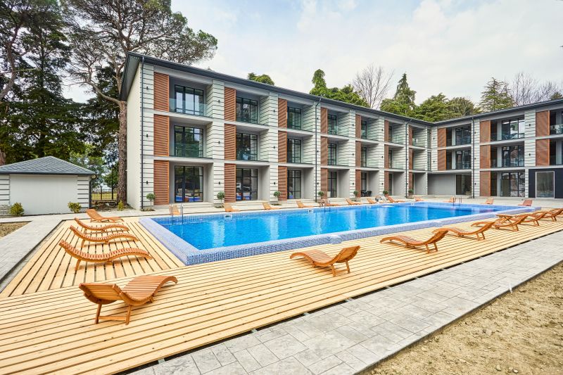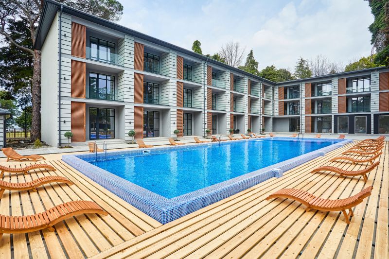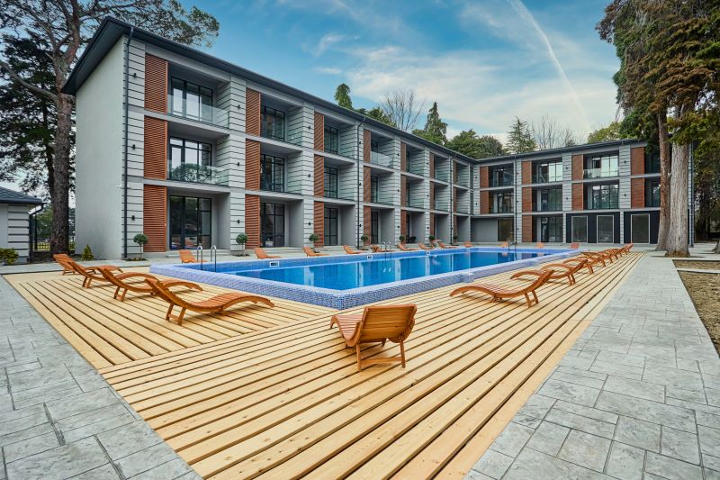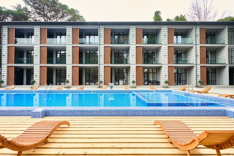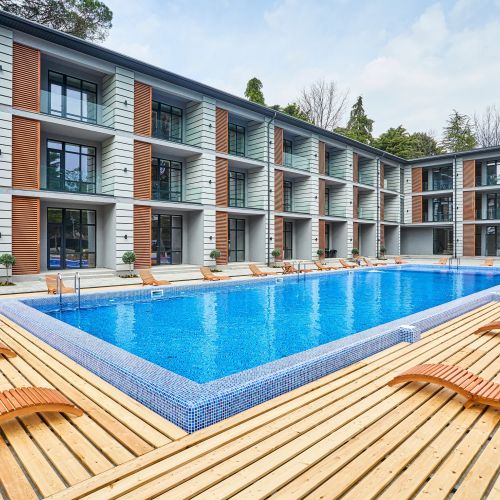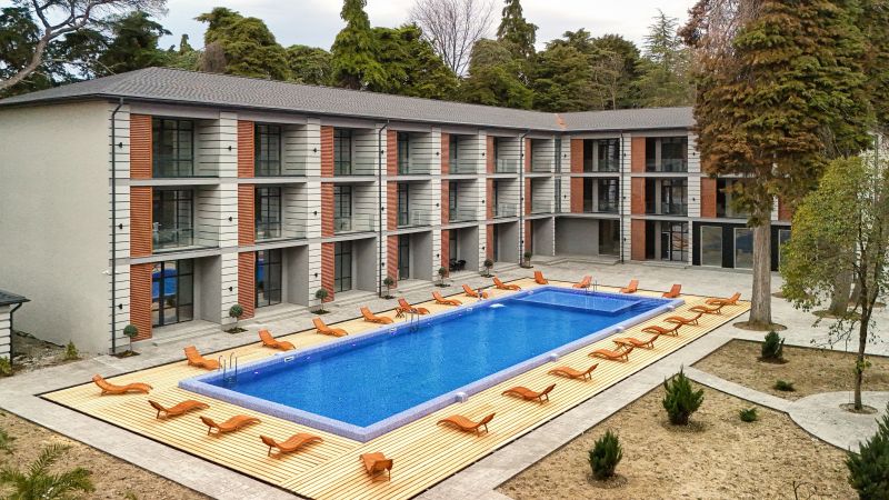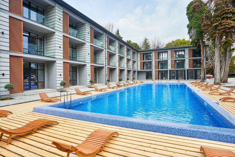 Отель «Солар» – это оазис спокойствия и комфорта, раскинувшийся на живописном берегу черного моря. Белоснежный фасад здания элегантно контрастирует с изумрудной зеленью сосен и пальм, с глубокой синевой морской глади. Здесь, вдали от городской суеты, каждый гость найдет свой уголок рая.